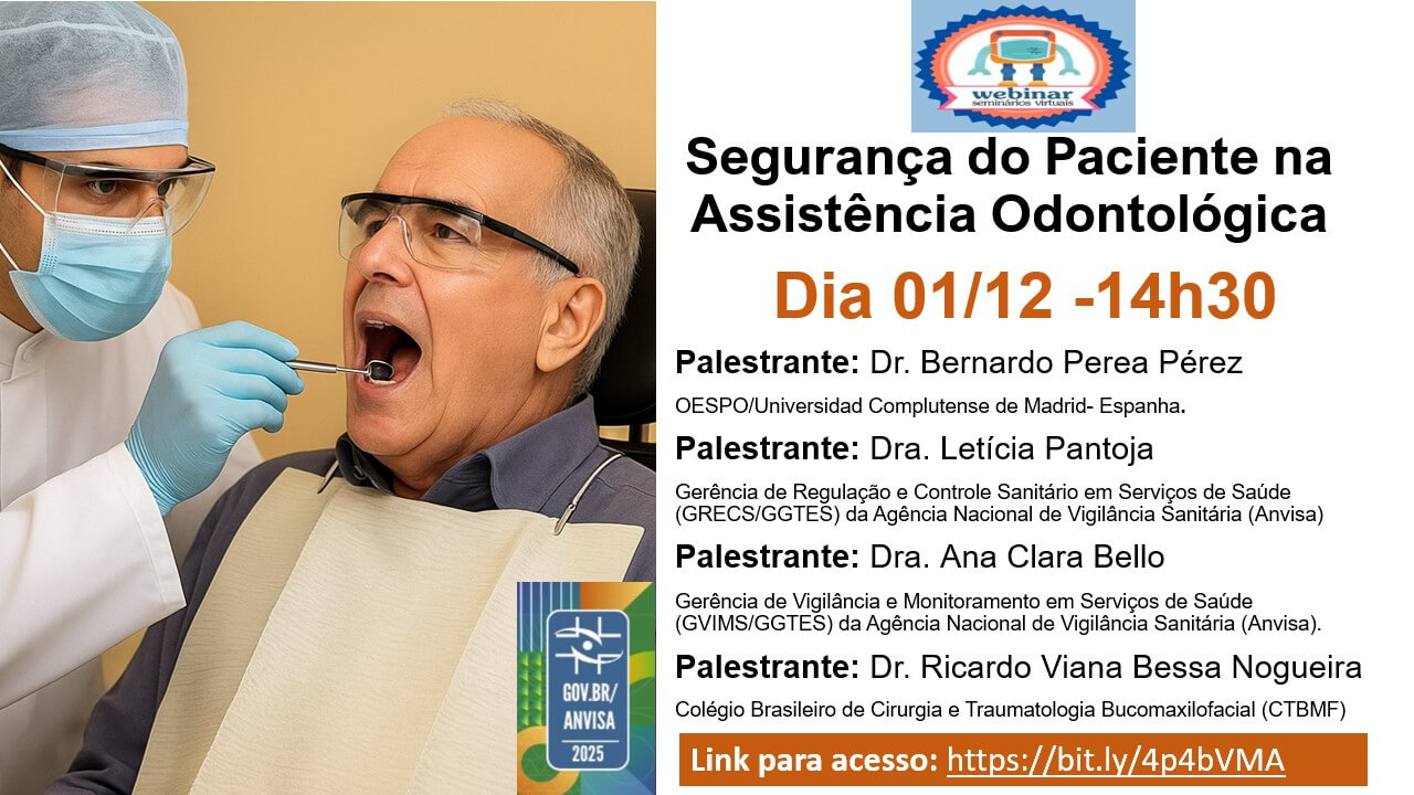 Anvisa convida para Webinar – Segurança do Paciente Odontológico